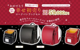 このチャンスをお見逃しなく! コードバンのような艶。ピカピカランドセル。 毎年お客さまよりご要望多数の希少素材を使用したランドセルを、お届けできる準備ができました。 早くからランドセルをお探しのお客さま限定にて先行予約をスタートいたします! クロ・アカ共にご予約が限定本数に達し次第、...