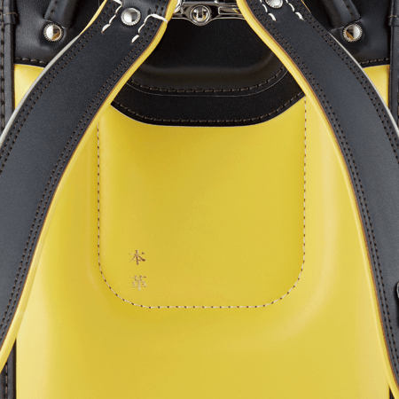 優等生イメージがある中、背あてのふっくら天然牛革にイエローをもってくることで、