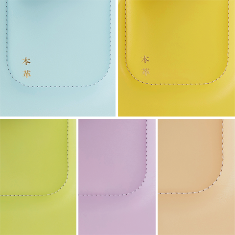 フジタだからこそ、黒でも青でも緑でも、、、8色染め上げた革はすべて天然牛革。