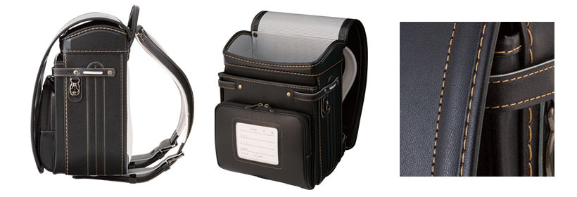 黒(ブラック)をベースに、輝くゴールドステッチがランドセルの表情を引き締めて、気品ある佇まいがカッコいい!