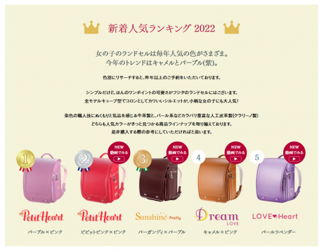 女の子の「光るランドセル」は昨年デビューしたばかりですが、ランキングの1位と2位となりました。