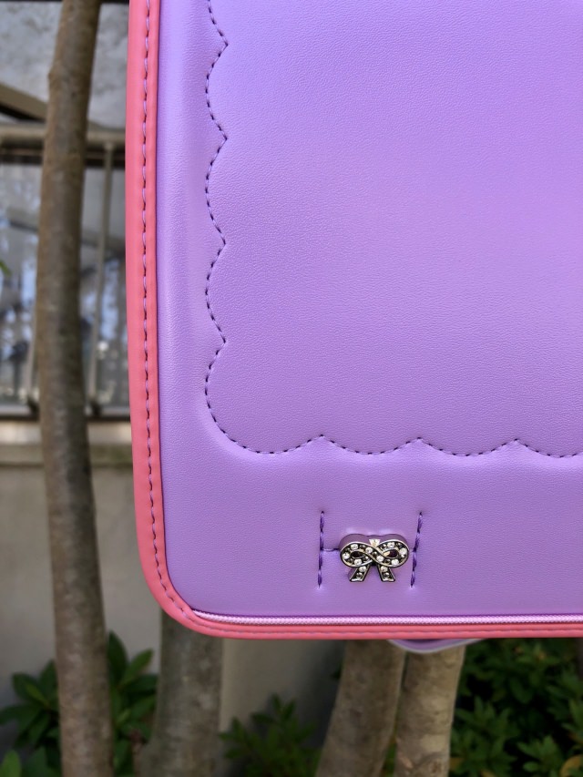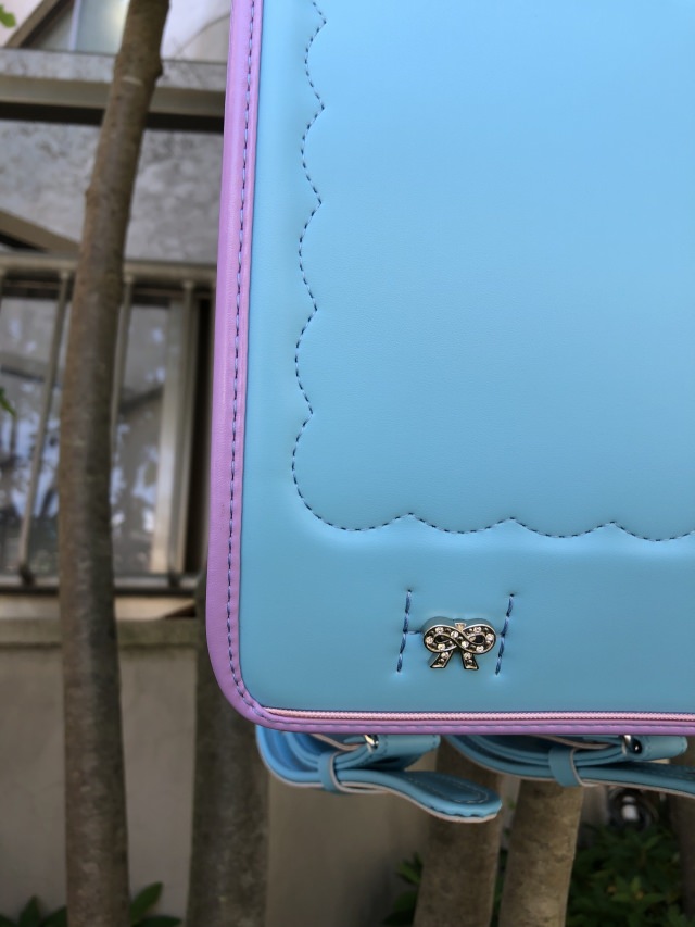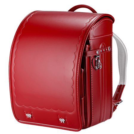 リボン鋲にかわいい曲線ステッチなど、華美な装飾はせずに女の子らしく仕上げたデザインは、
