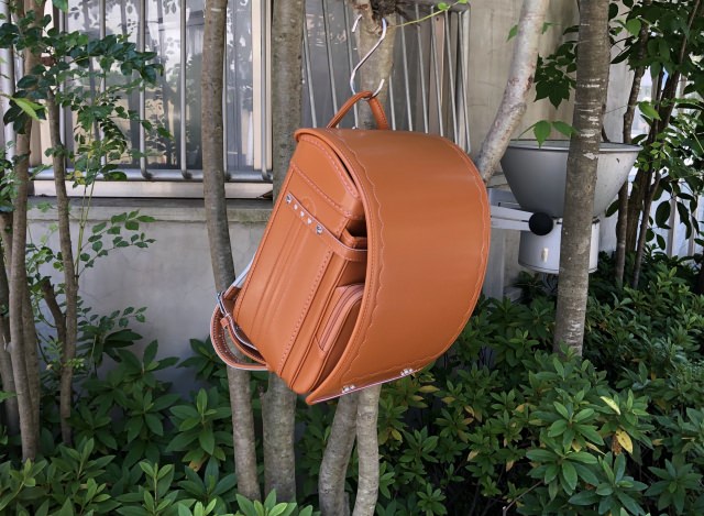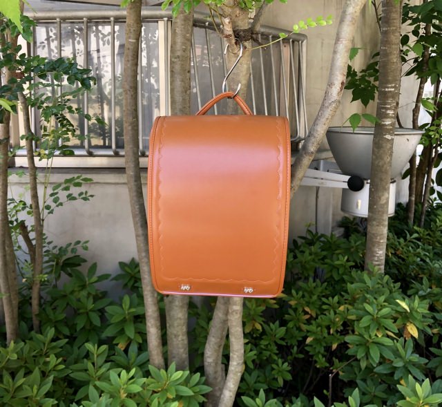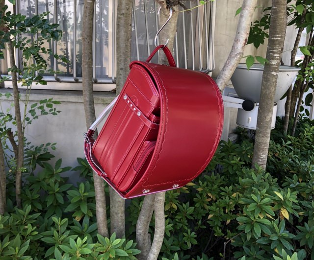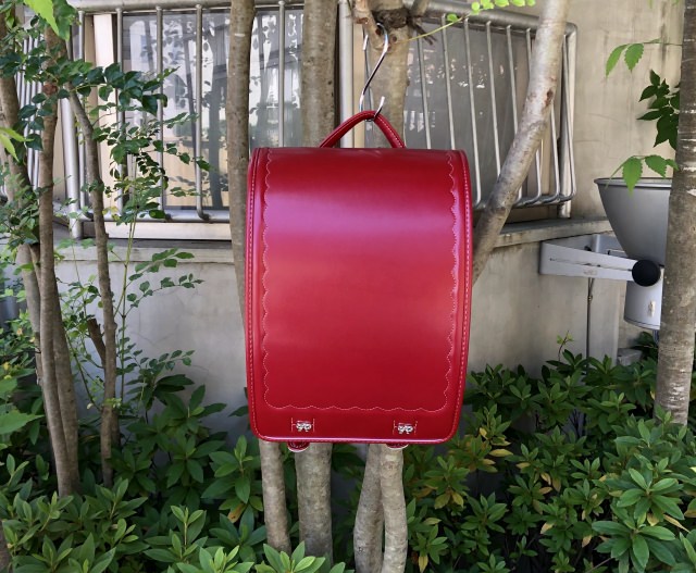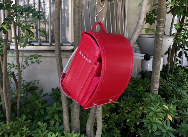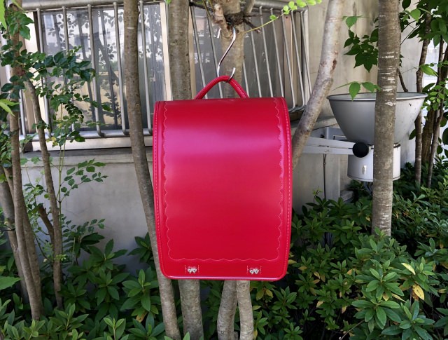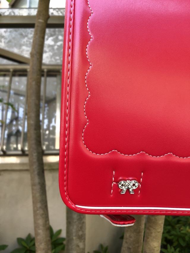 昔ながらのランドセルのような、深いアカにピンク色のステッチで彩りました。