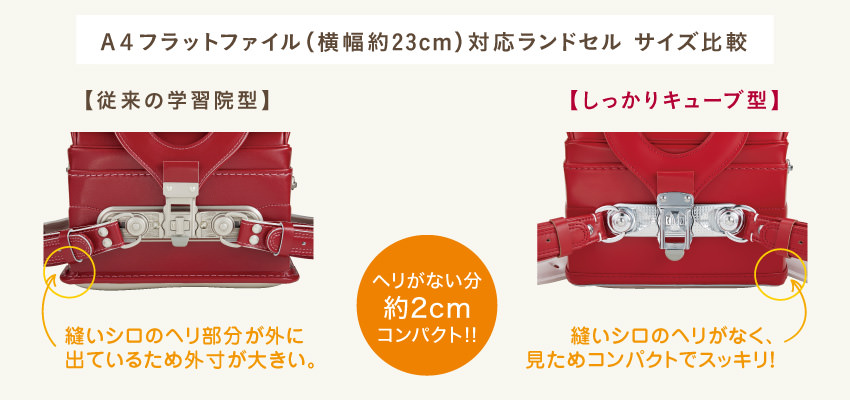 そうならないためにも、ランドセルの外寸は変えずに内寸だけ大きくできる、キューブ型のランドセルをフジタでは作ることにしたのです!