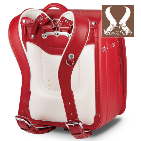 このような形にすることで、肩と胸に重さを分散させることができるのでお子さまの身体への負担を減らしています♪