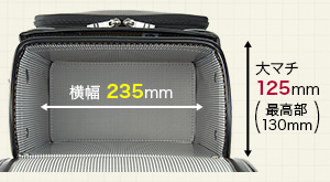 カバンのフジタ スペシャリティランドセルは、横幅235mm/マチ幅を125(最後部130)mmという大容量を確保しながら、