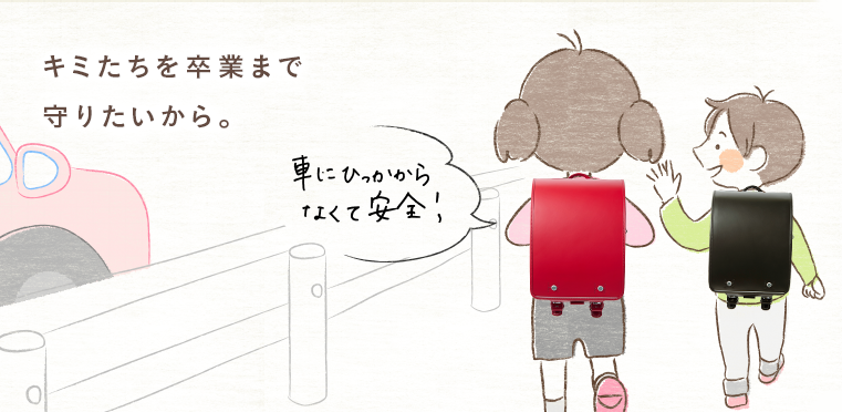 お子さまが安全に歩けるように、ランドセルにもいろいろな工夫をしているんですよ!