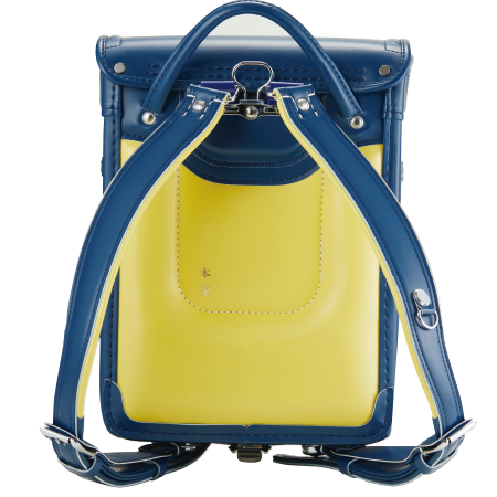「マリンブルー」とはまた違った色合いのブルーです。背あてのイエローが映えます。