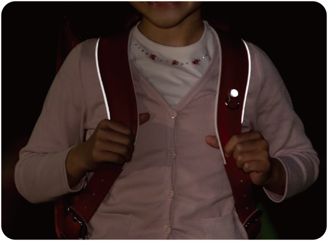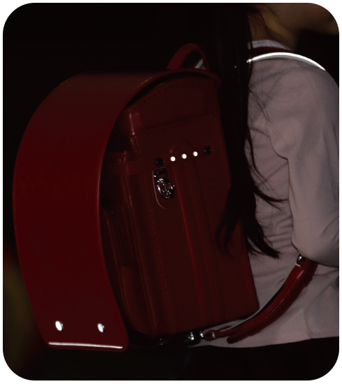 かぶせ・肩ベルトについているので、より安心して夜道も通学できます。