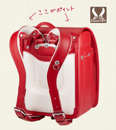 「カバンのフジタ スペシャリティランドセル」には背負いやすさの秘密として、身体にぴったりフィットするスーパーXベルトを使うことで肩だけに負担がいかないようにしています!