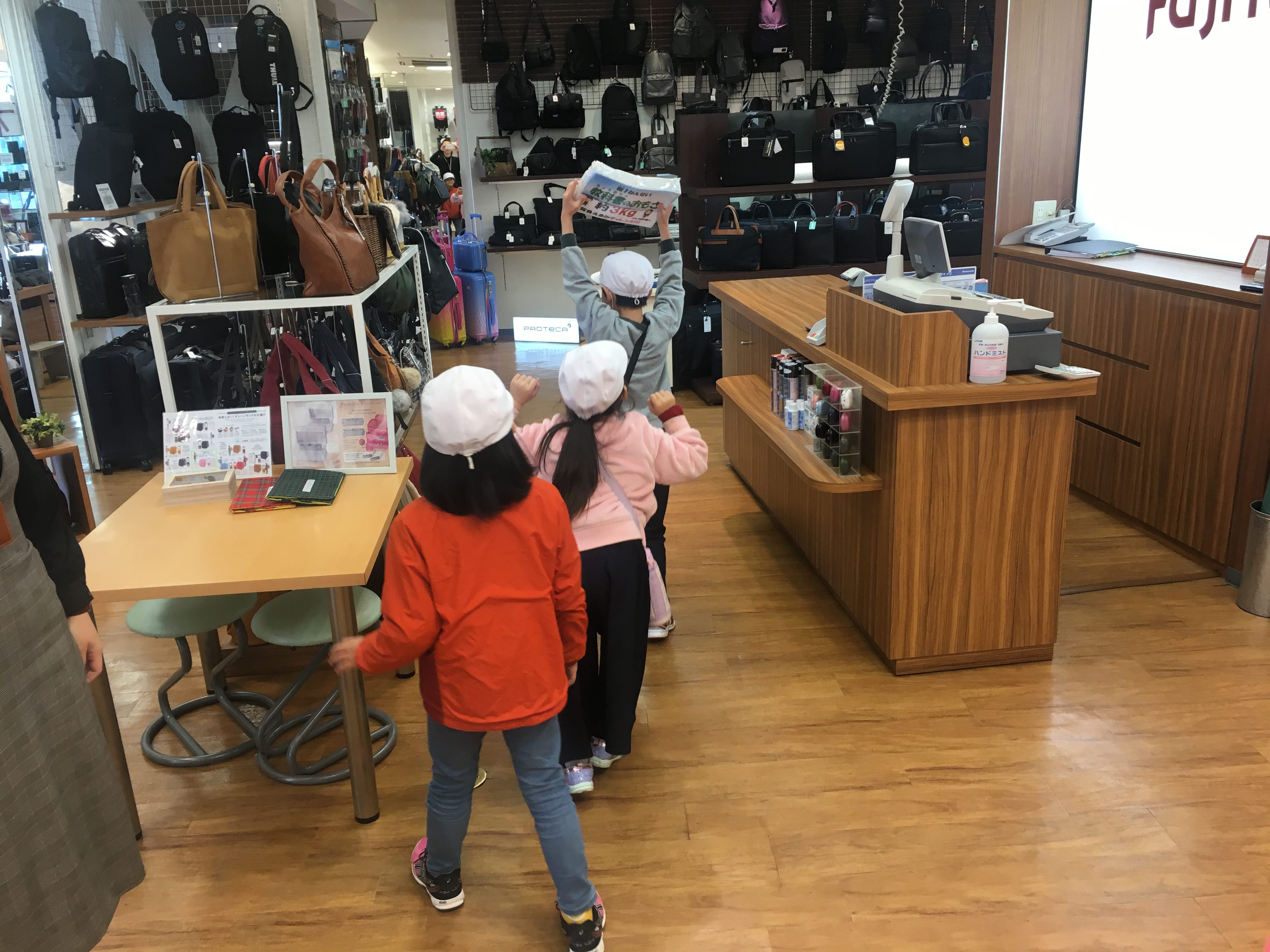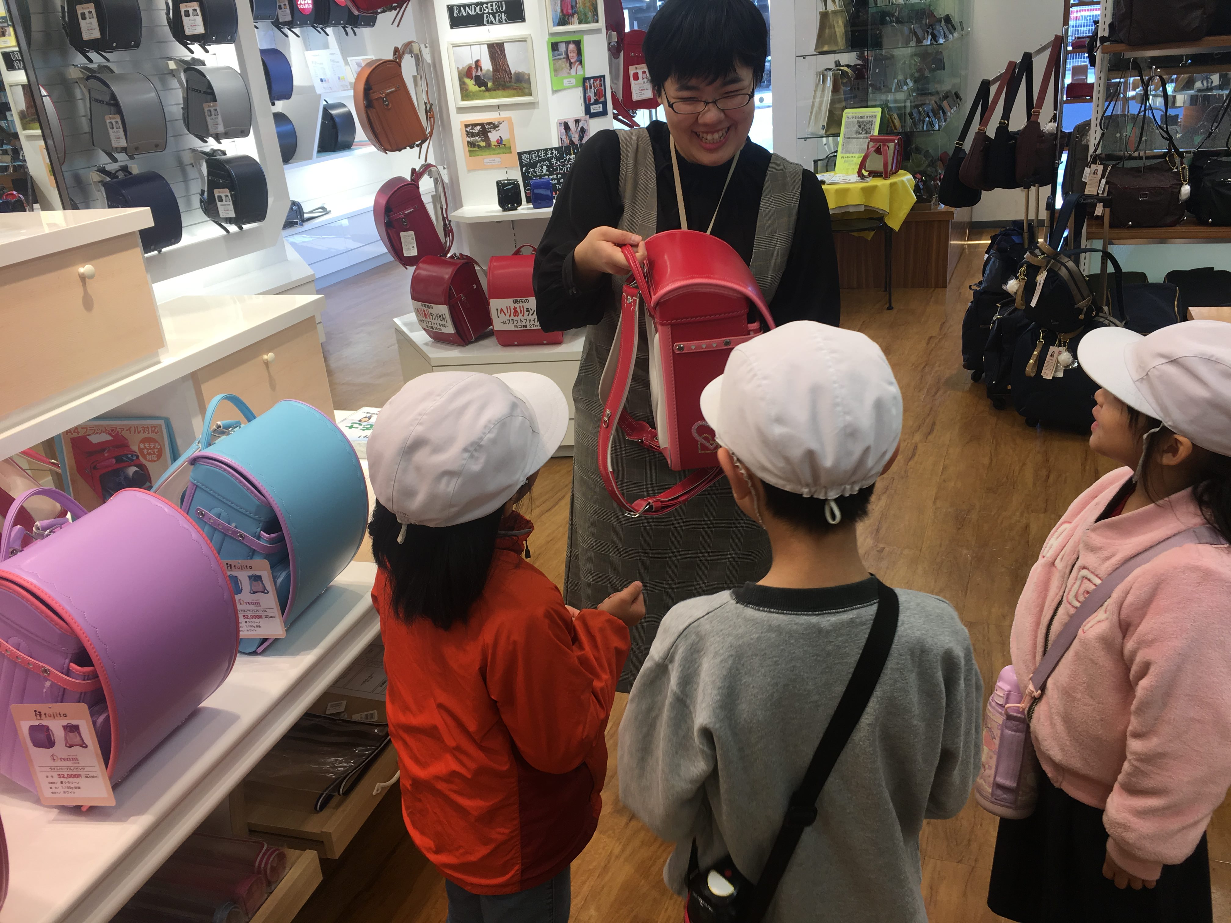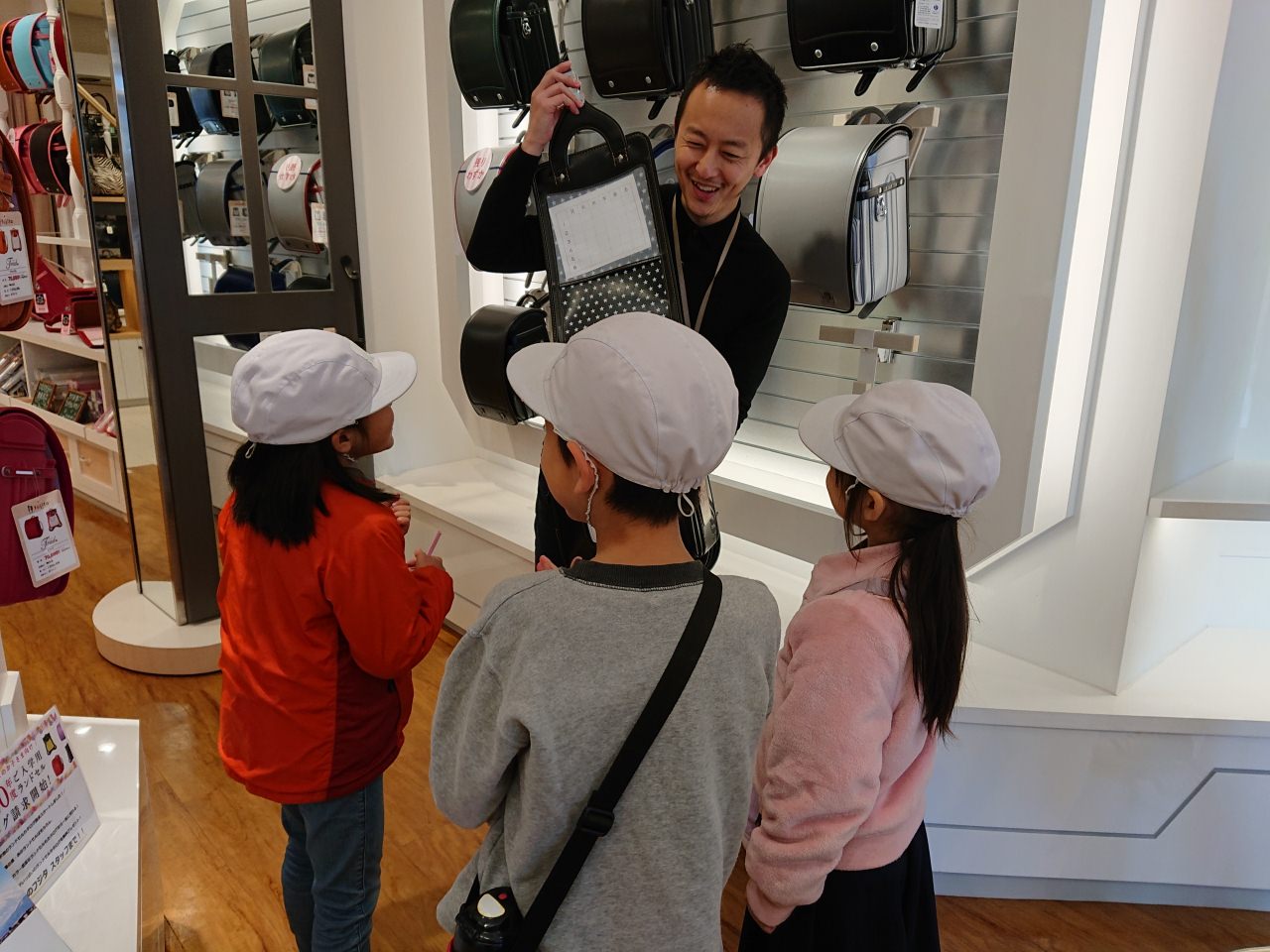 町探検という学校の行事で、地元の商店街にインタビュー。元気いっぱいな小学生レポーター3人。ランドセルについて、たくさんお話しさせていただきました。