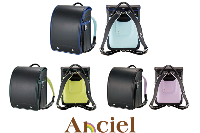 黒の本体に選べる5色の背当てが人気の『アンシェル』シリーズ。アンシェルとは虹のこと。まるで虹のようにカラフルな背当ては、チラリと見えてこそおしゃれです。