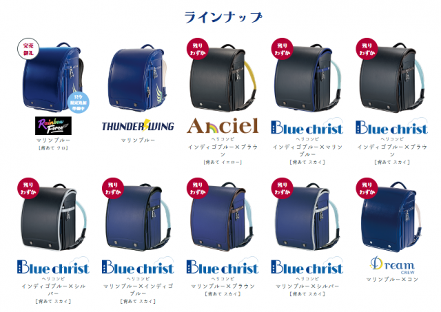 ご覧の通り、フジタの青いランドセルもほとんどのモデルが「残りわずか」となっています。この状況からも、青いランドセルは2021年にご入学の男の子たちからも大人気なのがうかがえます。