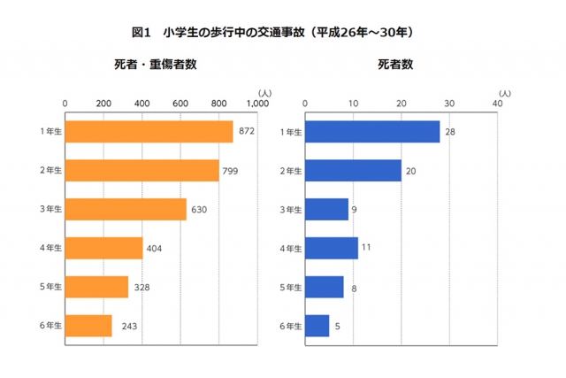 (出典:政府広報オンライン「小学校1年生の歩行中の死者・重傷者は6年生の約3.6倍!新1年生を交通事故から守るには? ~小学生の歩行中の交通事故(平成26年~30年)~」)