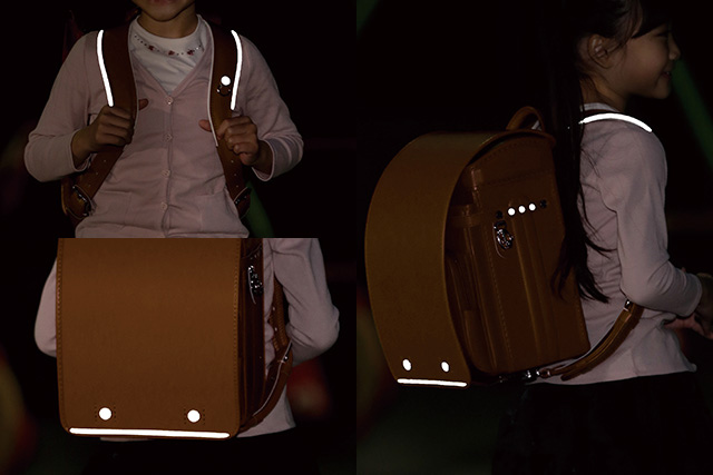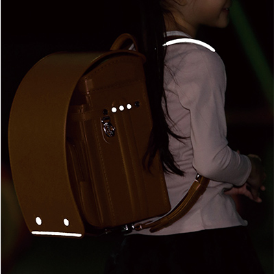 「暗い道でもしっかり存在をアピールする安全なランドセル」
