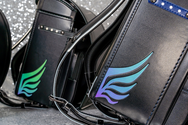 側面の大きなツバサのモチーフが虹色に光るランドセル。