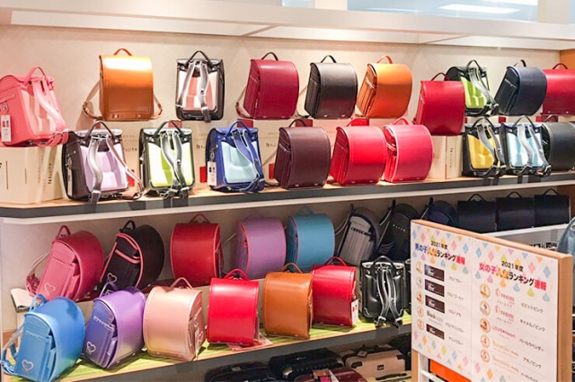 カタログや売り場には、さまざまな色のランドセルが並んでいます。