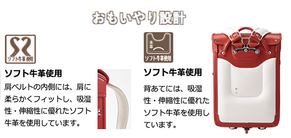 天然皮革の牛革を使ったランドセルは、お子さまの身体に自然となじむので、
