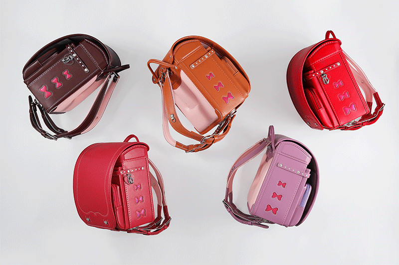 キラキラ光るリボンがカワイイをぐんとアップしてくれるランドセル。スイートなカラーバリエーションと、ぷにっと質感のリボンにも注目。