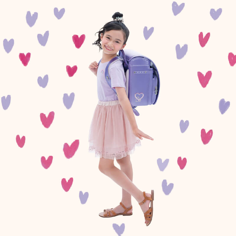 女の子の想い描く「かわいい」が詰まったランドセル!サイドのかわいいハートモチーフは昼は虹色に光って、夜は安全面を高めてくれる強い味方