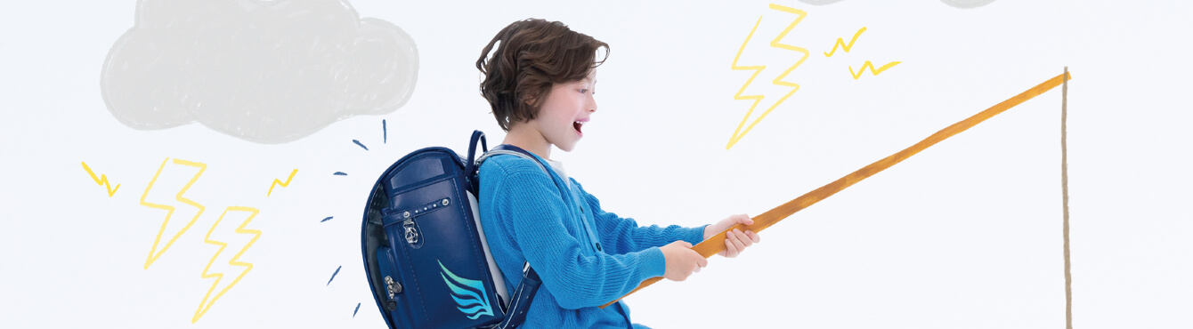 光るランドセル、カッコよさ宇宙級!男の子の好奇心を刺激する虹色に輝くツバサは、光の角度によって昼も夜もキラキラ輝きます。さぁ、輝くツバサで一歩を大きく羽ばたこう。