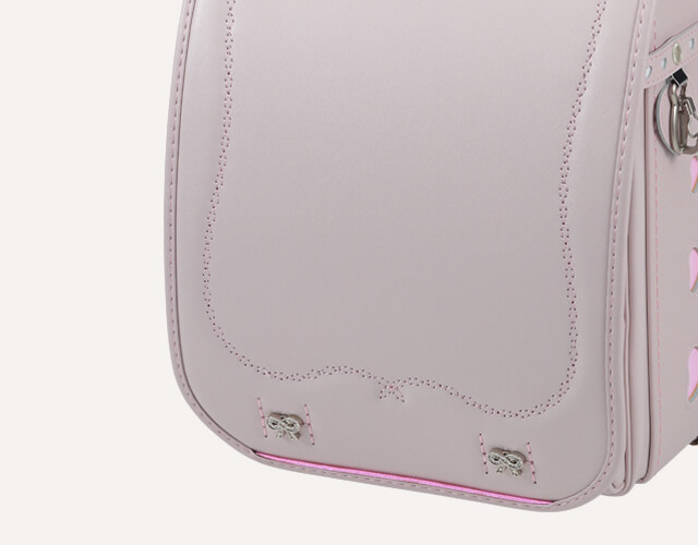 女の子に大人気のくすみ系のホワイト。マイルドなミルキーベージュはどんなお子さまにもお似合いの色。サイドの3連のリボンはキラキラ光るだけでなく、光の角度で虹色にも変化します。6年間毎日使うものだから、大好きな色を選ばせてあげたいですね。シンプルだけでは物足い女の子にぴったりなカワイイを格上げする「甘くなり過ぎない」カラーです。