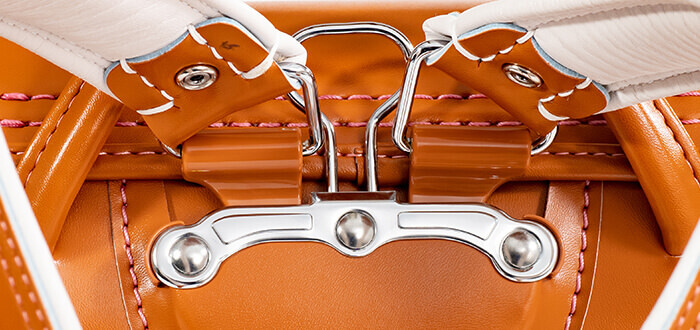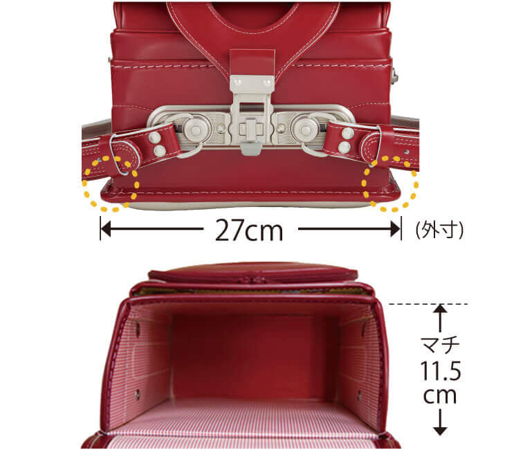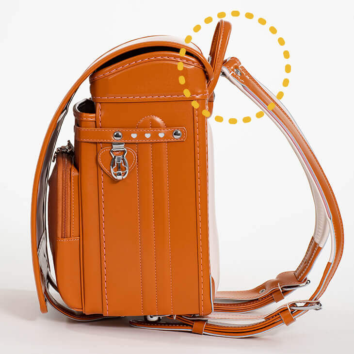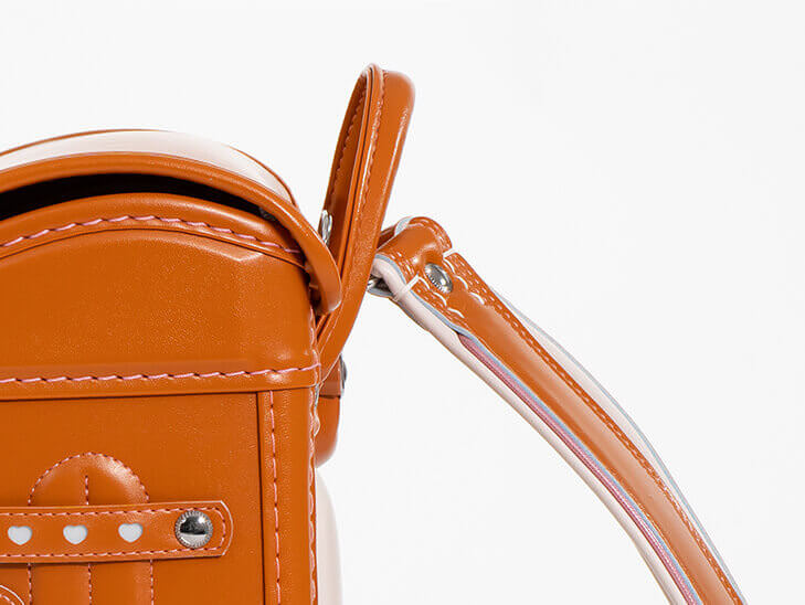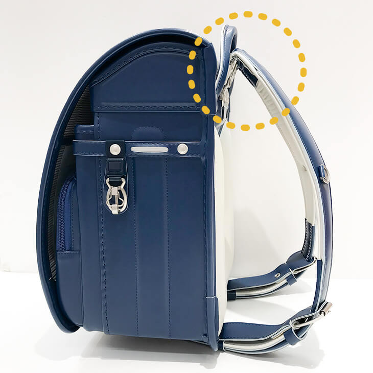 下に向かわず、上に向かって肩ベルトを取り付けるのが「立ち上がり肩ベルト」です。現代では約8割のランドセルが「立ち上がり肩ベルト」を採用しているといわれています。