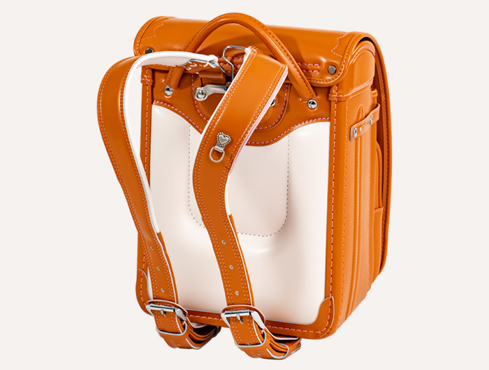 伊藤博文が献上したカバンが基本となった「学習院型」のランドセルは、本体と背あてを外側から縫い合わせています。そのため縫いシロの部分がヘリとなって出っ張って残ります。大正から平成20年頃まではこの「学習院型」がランドセルの主流でした。