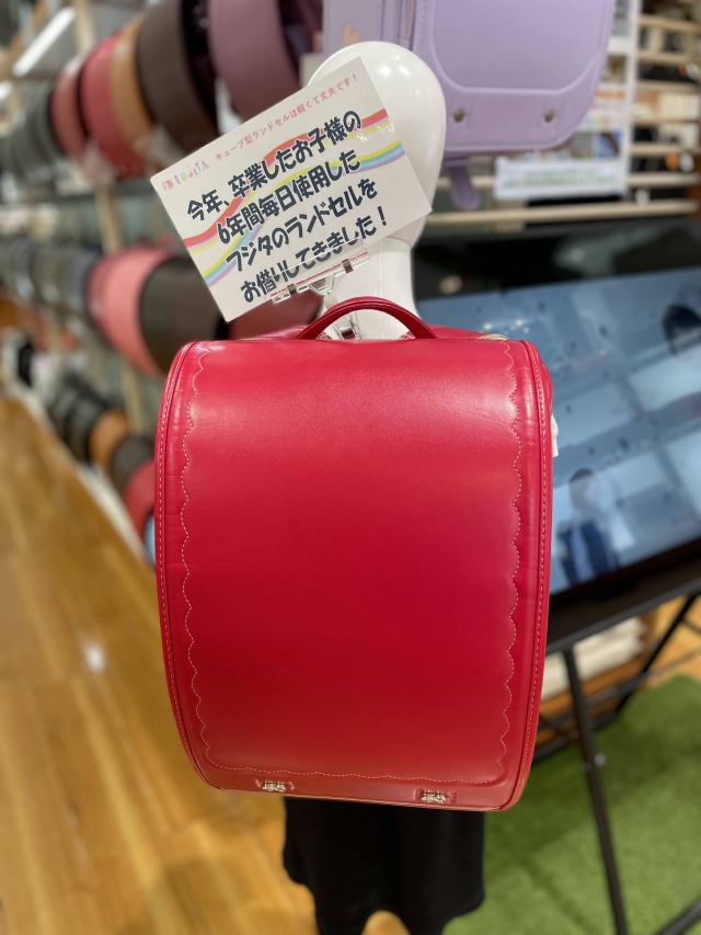 6年間使用したランドセセルを店舗の展示品として、大切に扱わせていただきます。