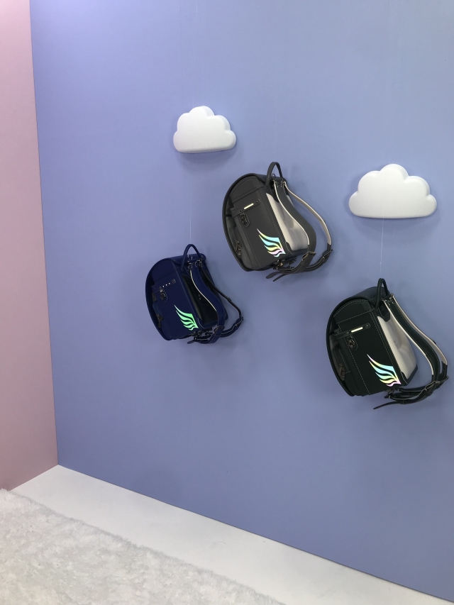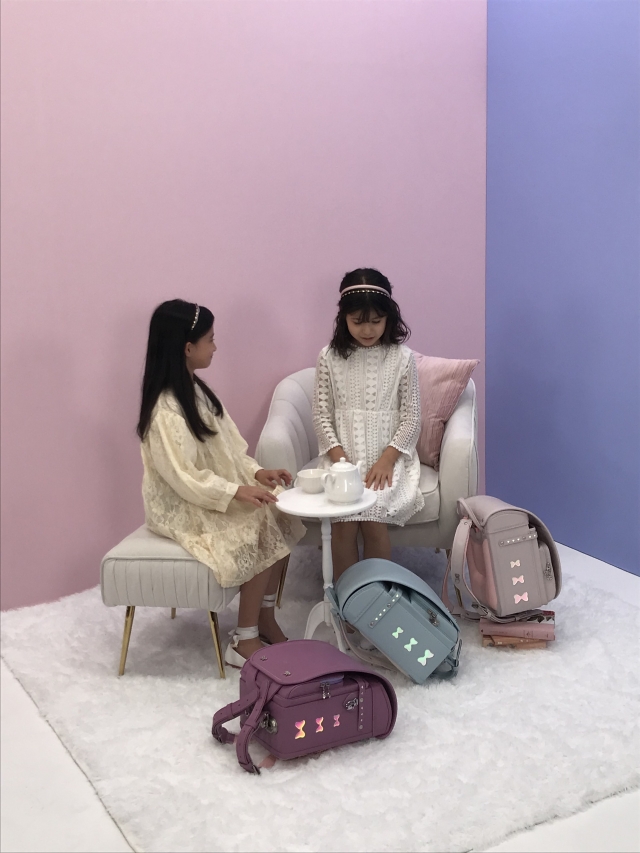 キッズモデルさん達はカラフルはランドセルを前に大はしゃぎ!次から次へとたくさん背負っていただきました。