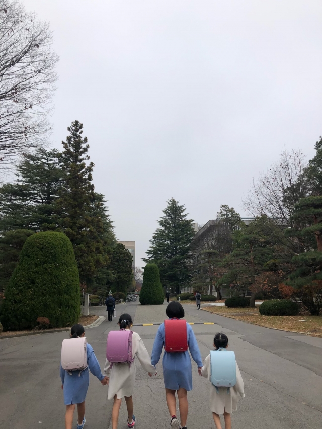 広いキャンパス内をランドセルを背負って研究センター棟まで向かいます。