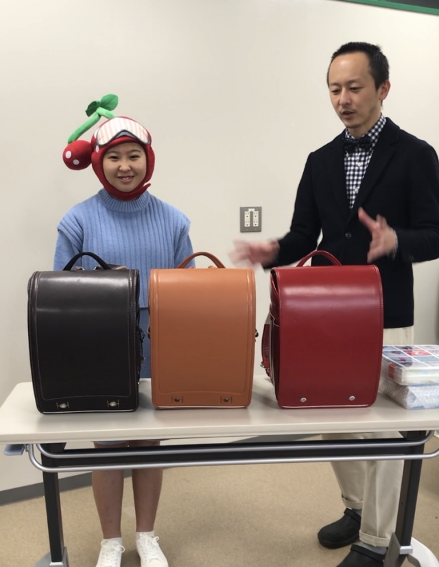 現役小学生のモデルさん達にご協力いただき、実際に背負っているランドセルを持参してもらい、目隠をして自分のランドセルを当てるクイズをおこないました。