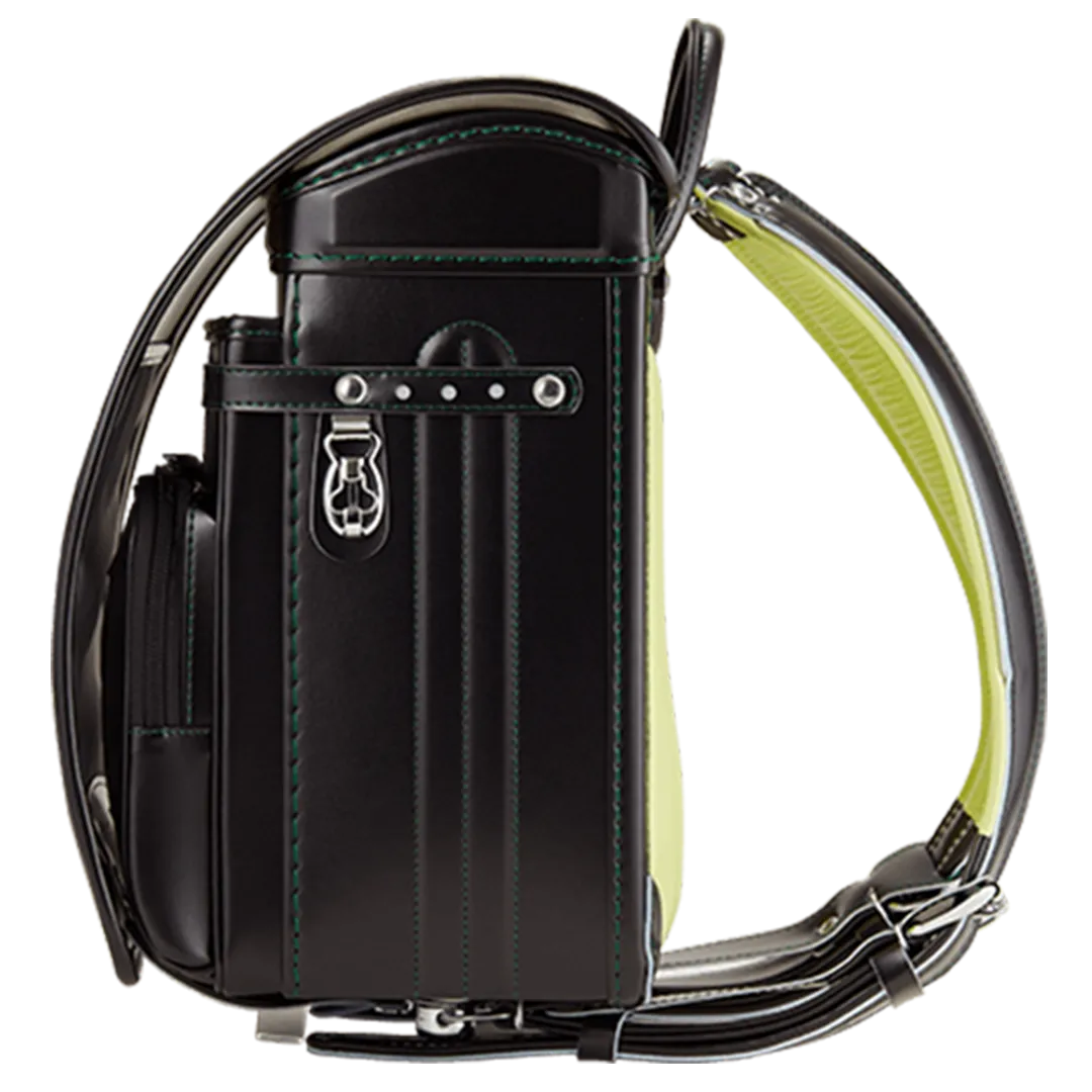 シンプルなデザインに、フジタのランドセルの知恵がぎゅっと詰まったディライト。ステッチとコーディネートしたカラフルな背あてもポイントです。軽くて丈夫なクラリーノ