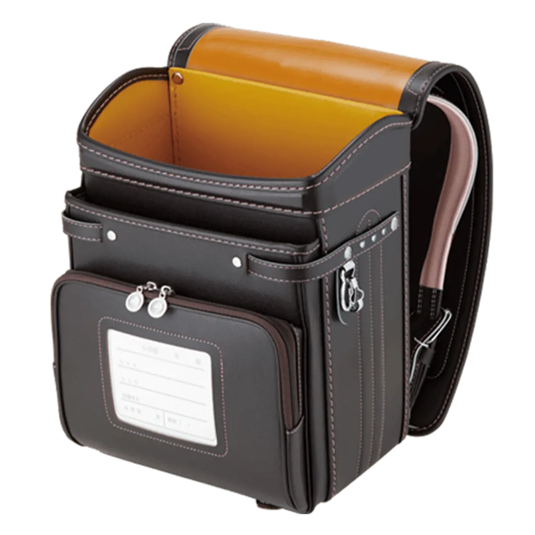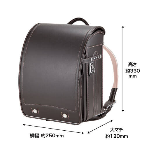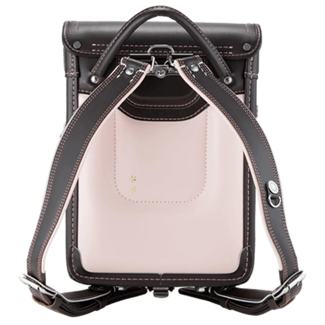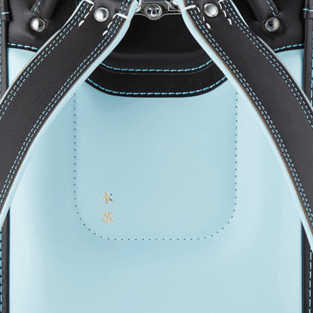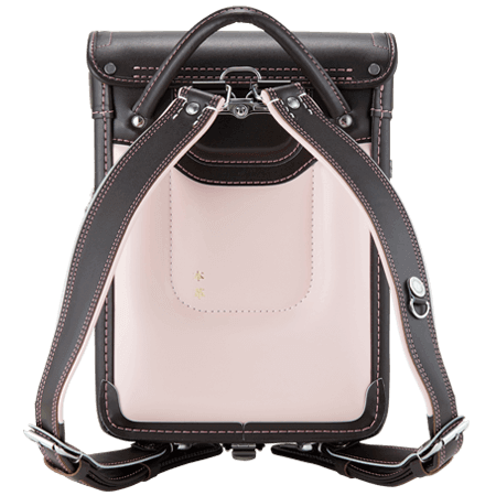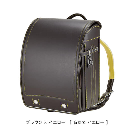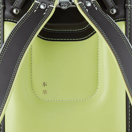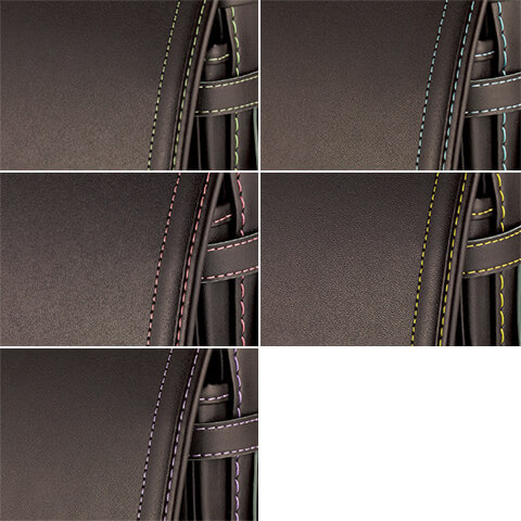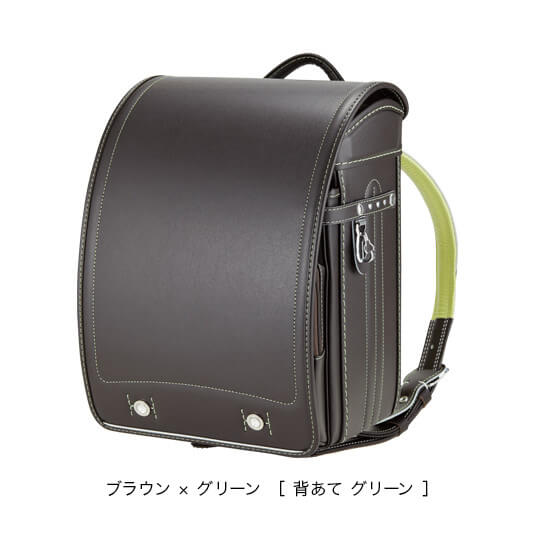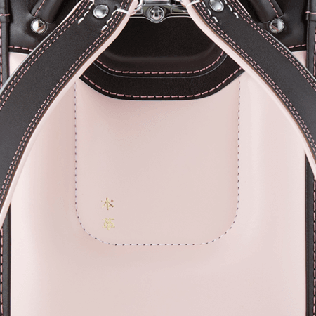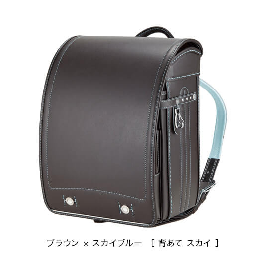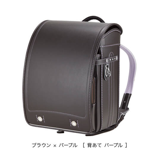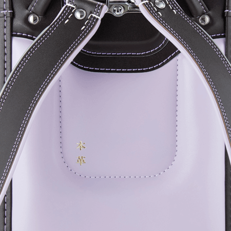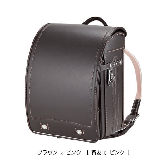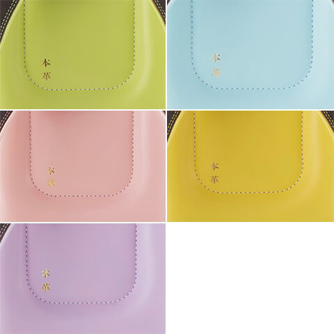 落ち着いたブラウンに映える5色のパステル調の背あてにはふっくら天然牛革を使用。高学年になっても飽きのこない美しいデザインです。