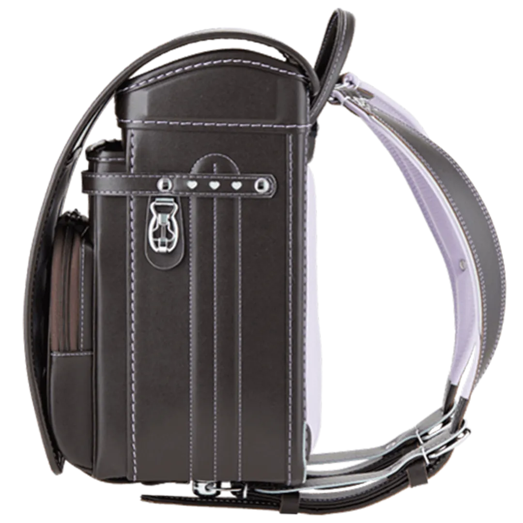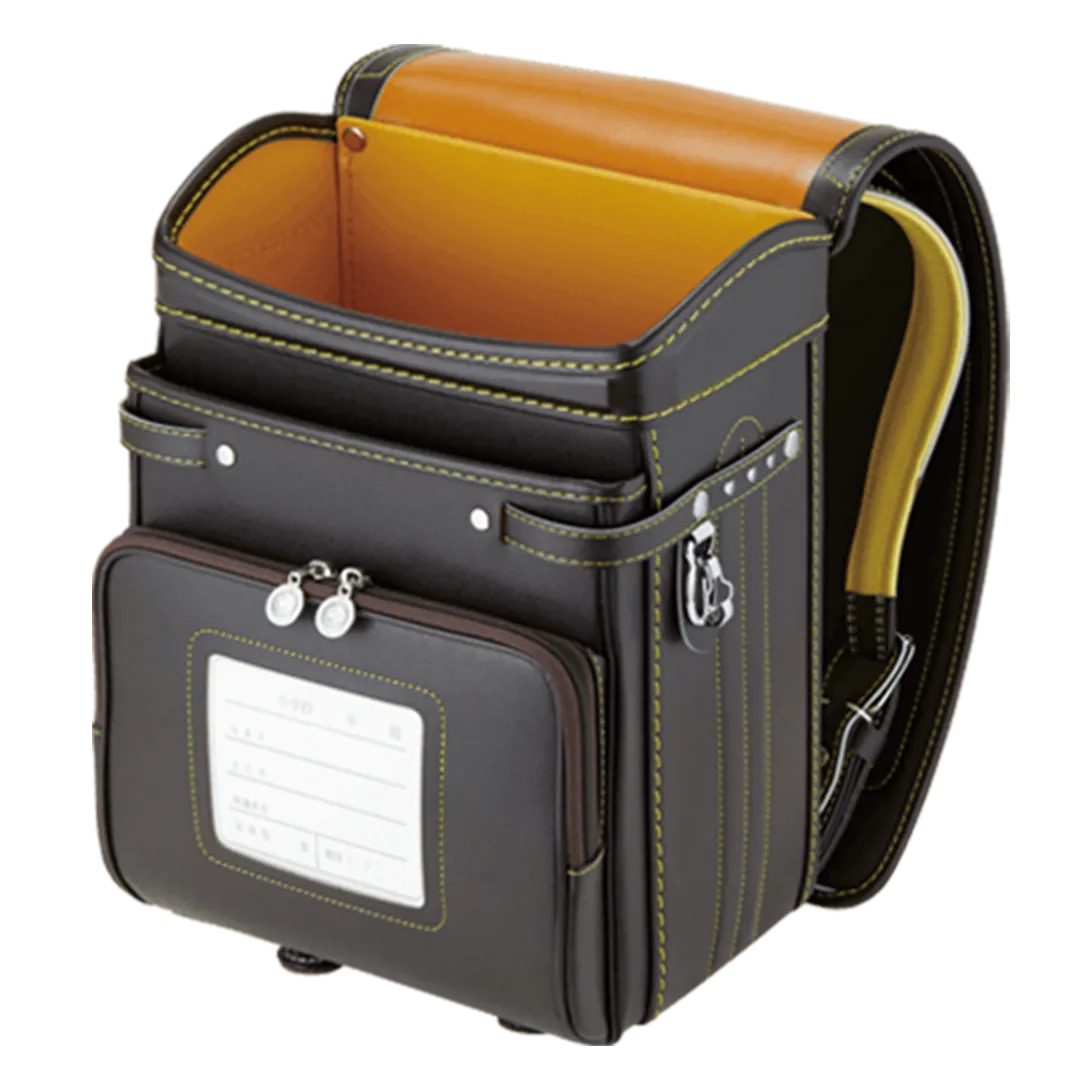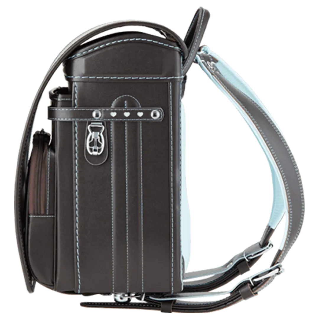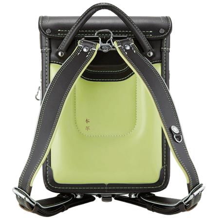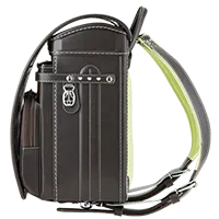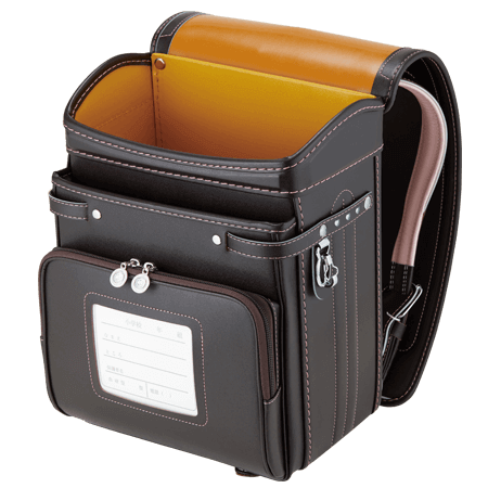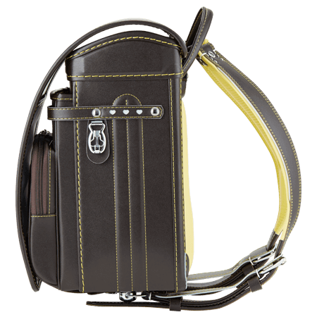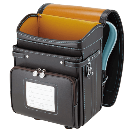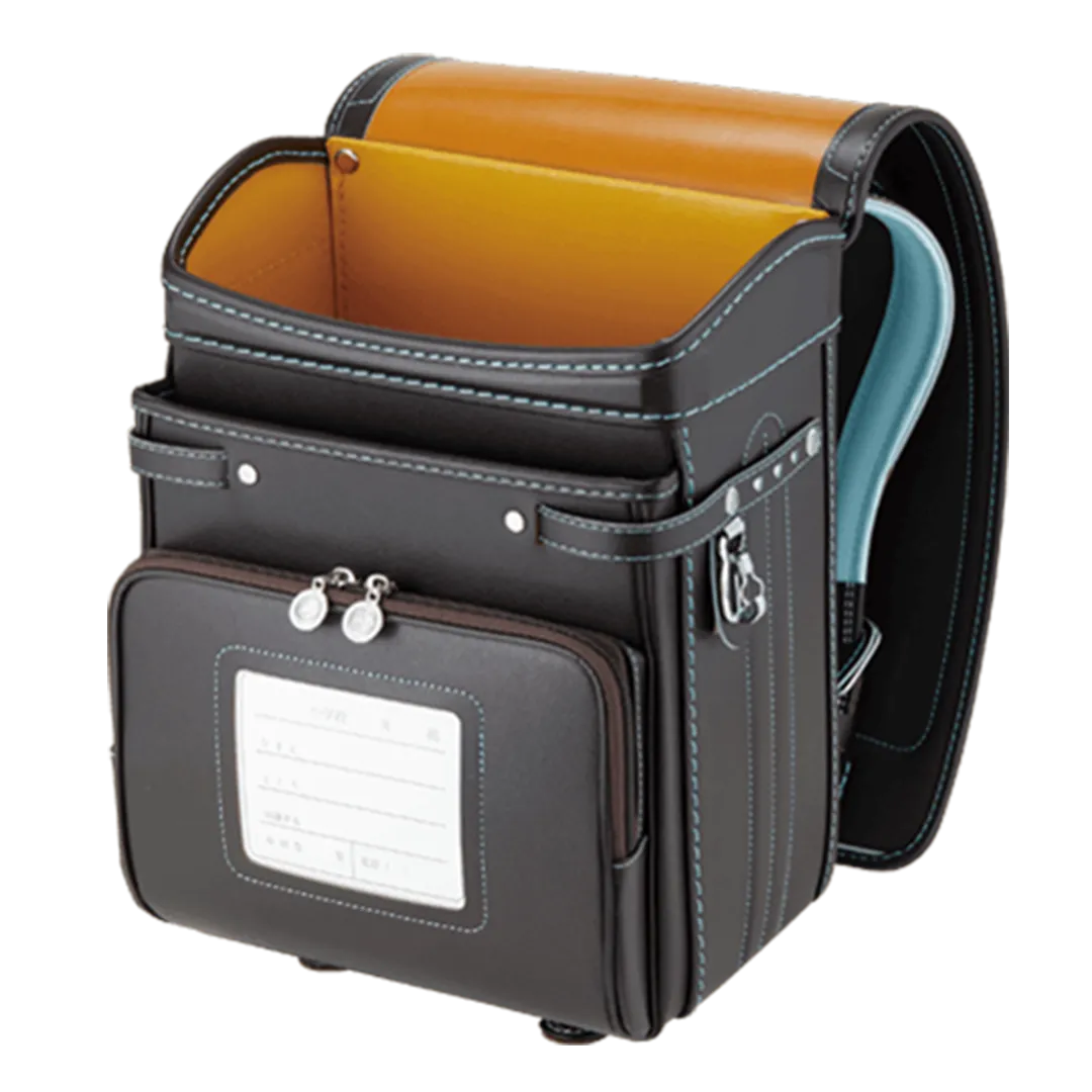 落ち着いたブラウンに映える5色のパステル調の背あてにはふっくら天然牛革を使用。高学年になっても飽きのこない美しいデザインです。