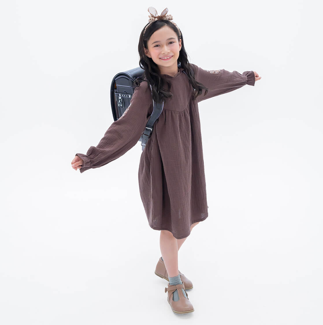 上品なブラウンが小さなレディ気分にさせてくれる「グレースランド」シリーズ。ダイヤモンドモチーフの金具や、背あてとリンクしたステッチの色など少し大人っぽいデザインが女の子に人気です。