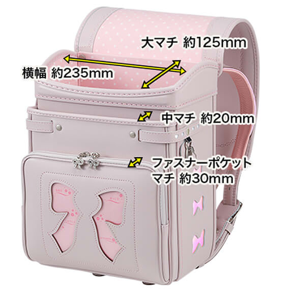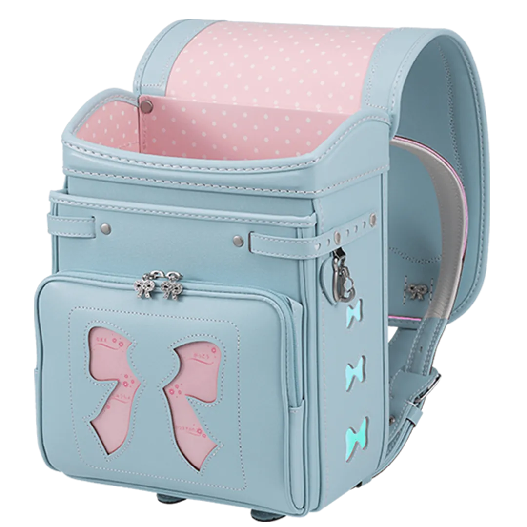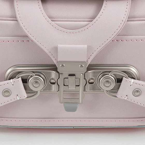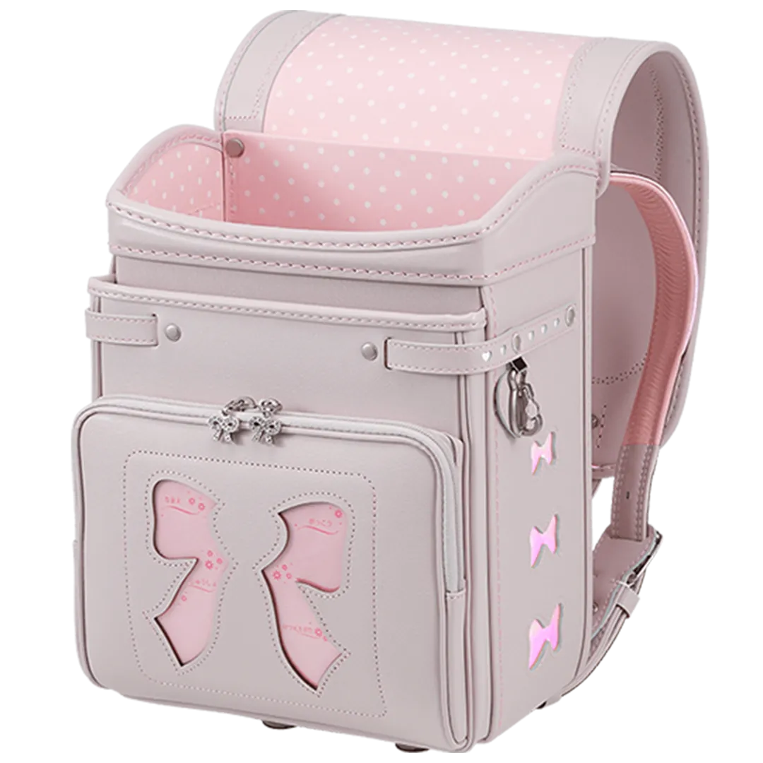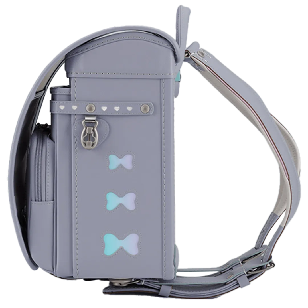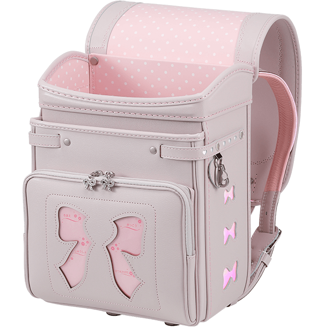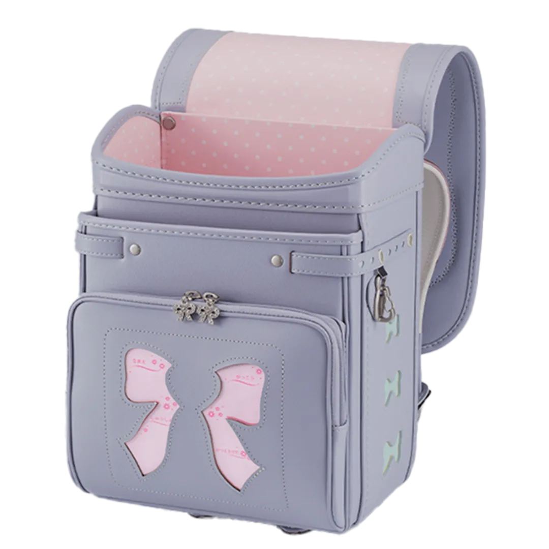 他にはない、上品なパステルカラーが魅力的なランドセル。昼も夜も光るリボンで特別なデザインを楽しんで。