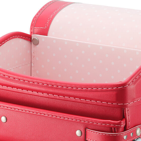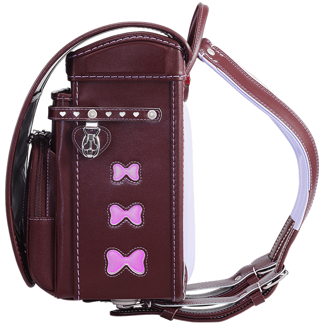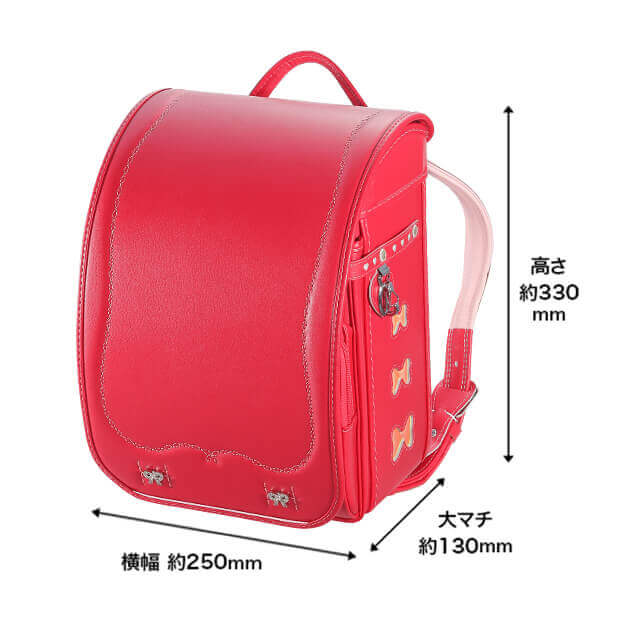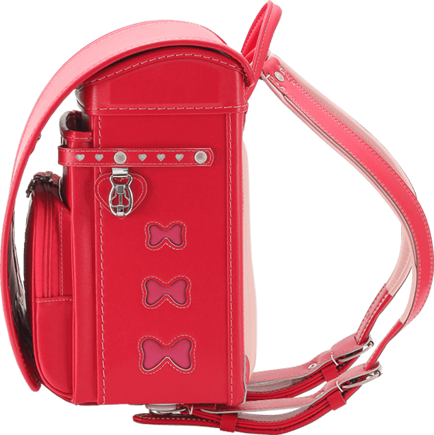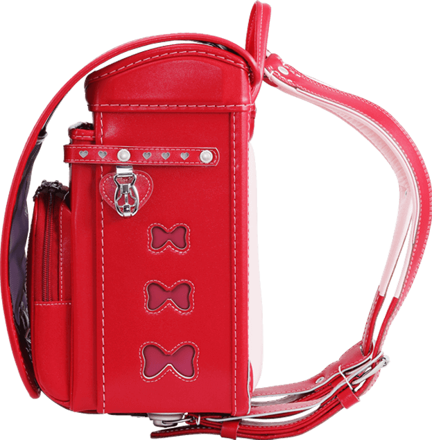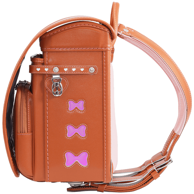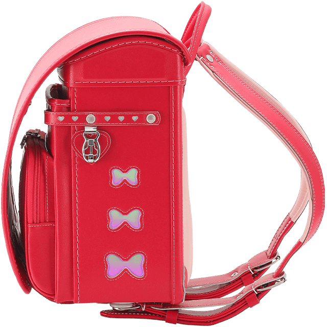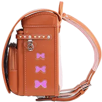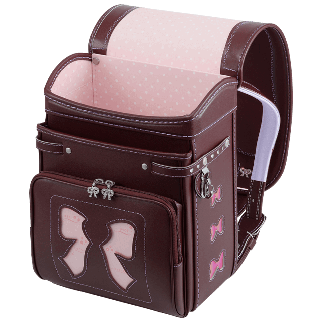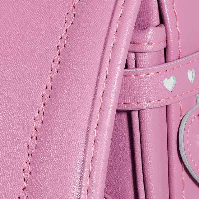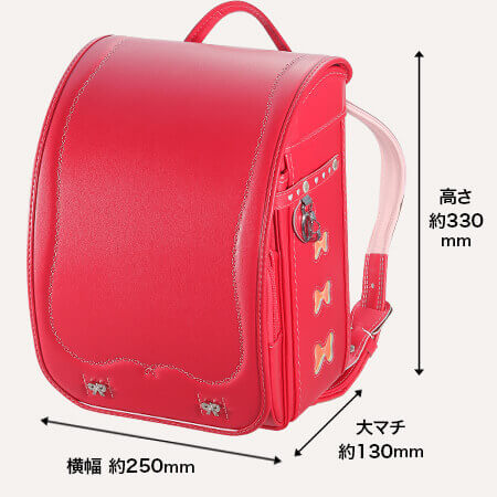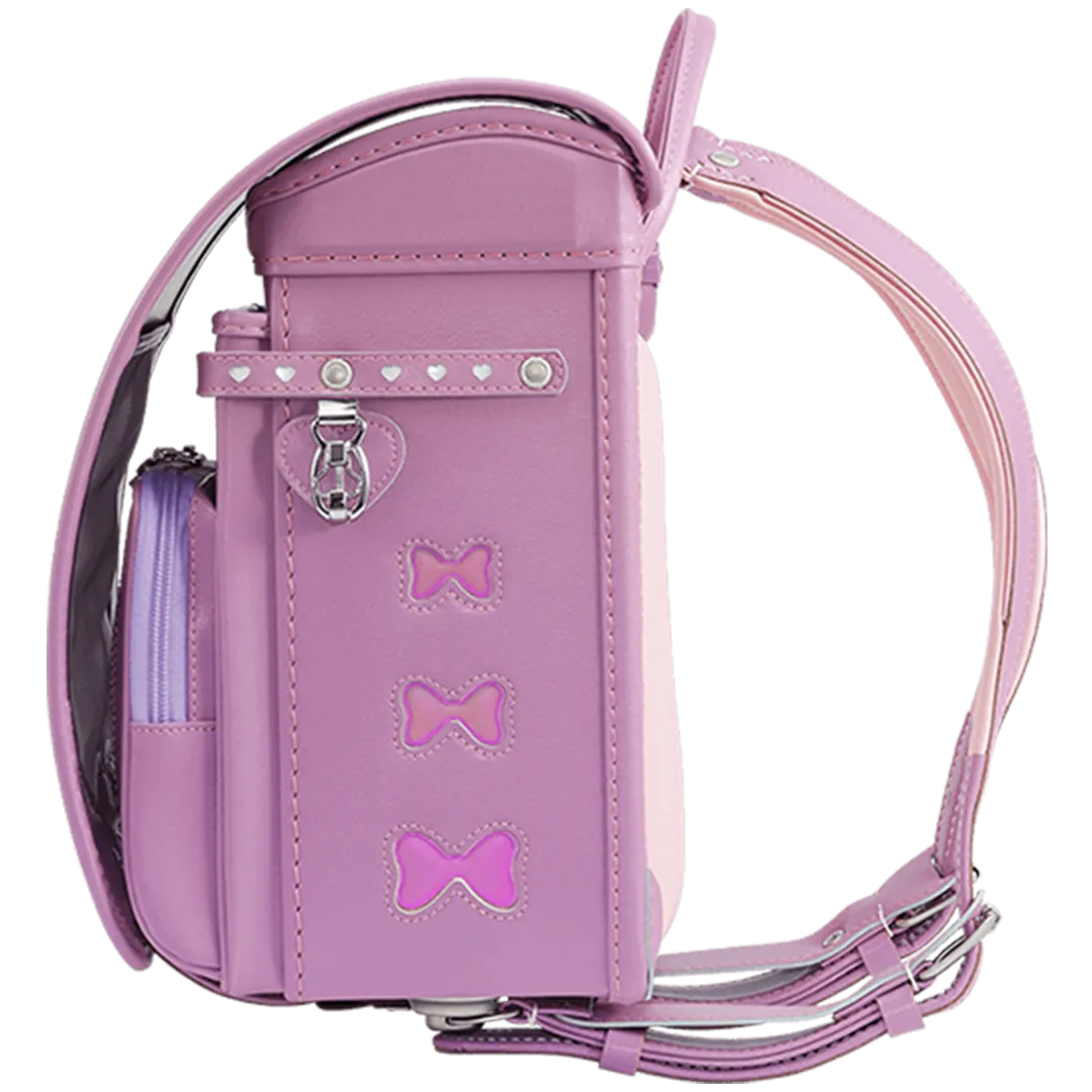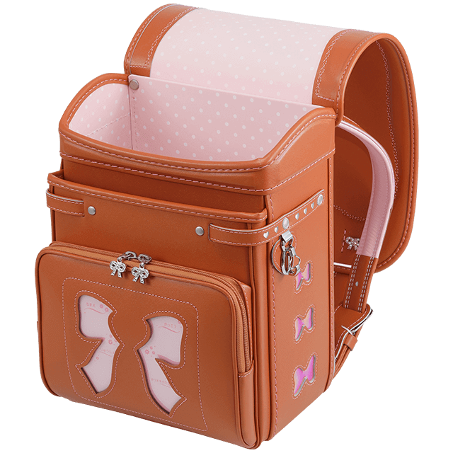 キラキラ光るリボンがキュートなランドセル。女の子に大人気のスイートなカラーバリエーションと、ぷにっと質感のリボンに注目。フラッシュ撮影でリボンにキラキラ輝く魔法をかけよう。