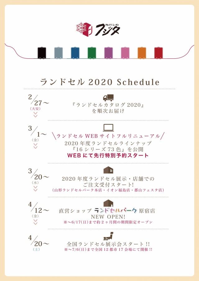 カバンのフジタ2019年度ランドセル販売は本日(2月26日)をもちまして完売となりました。