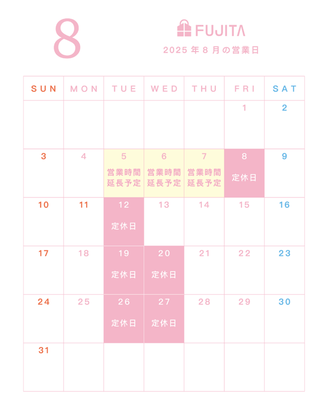 8月は花笠まつり&お盆休みで営業日が変更になります