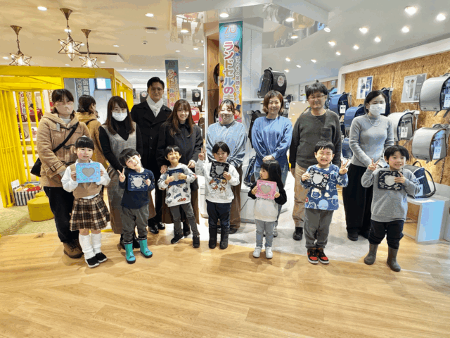 先日カバンのフジタ山形十日町本店にて「ランドセルの未来展」と称して、ランドセルのポケット部分を使用したフォトフレームづくりのワークショップと70周年記念モデルのお披露目イベントを開催しました。