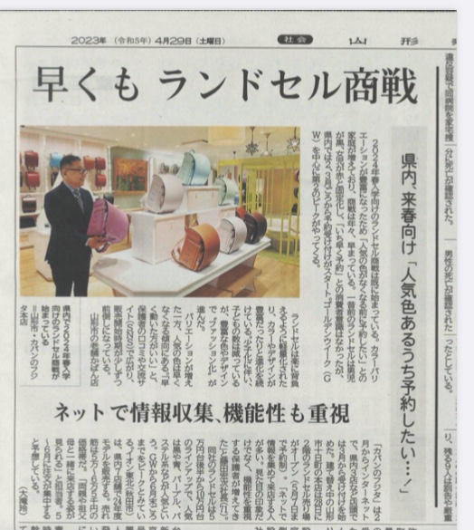 フジタのランドセルの紹介記事が山形新聞に掲載されました!