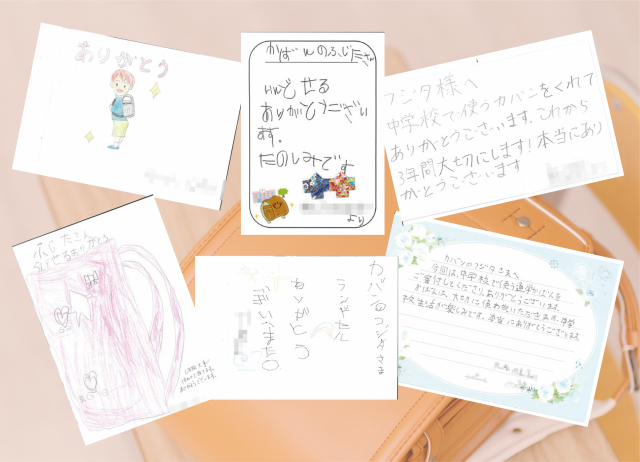 昨年も山形市にランドセルと中学生用カバンを進呈させていただいたところ、感謝状と、かわいいお子さま方からお礼のお手紙をいただきました。