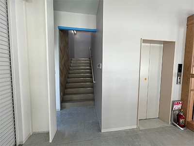ご入店いただきますと、階段とエレベーターがございますので、2階へお越しください。