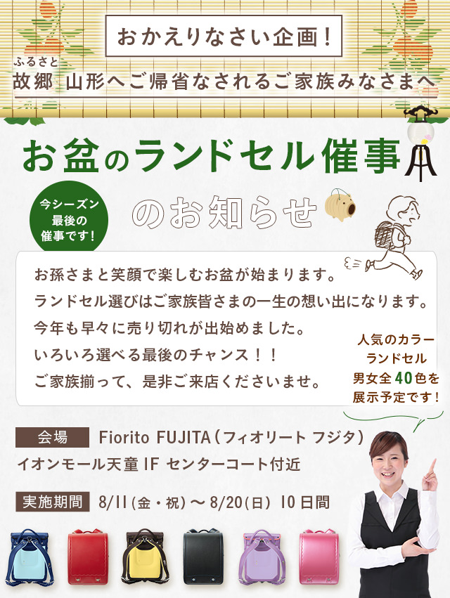 お孫さまと笑顔で楽しむお盆が始まりますパッと笑顔にかわるランドセル選びはご家族皆さまの一生の想い出になります。