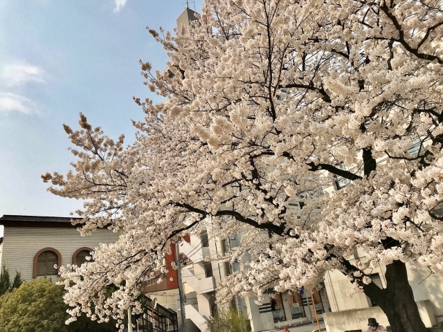 今年はコロナウイルス感染症の影響で、家族でお花見ができず残念ですが、散歩がてら、山形本店すぐそばにある公園まで足をのばすと、ソメイヨシノの桜も見頃を迎えておりました。