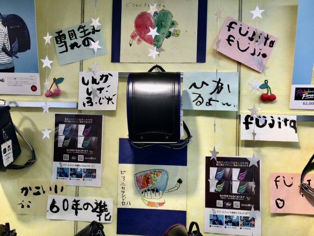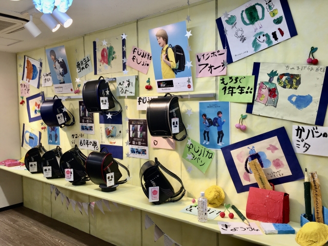 お子さま達が描いたタイトル「こんなランドセルあったらいいな~」の絵画も展示中です!