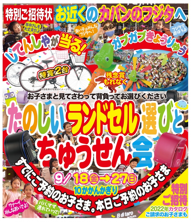 明日より、フジタ各店舗にてランドセルたのしい大抽選会を開催いたします。