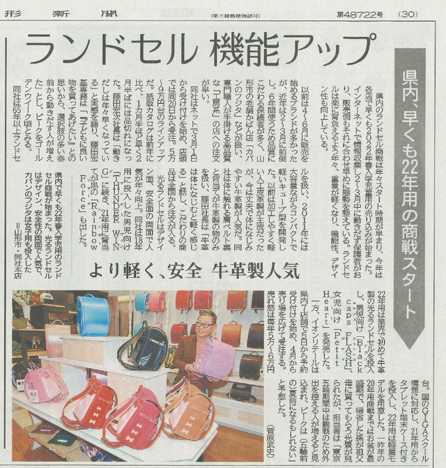 山形新聞に【光るランドセル】が掲載されました