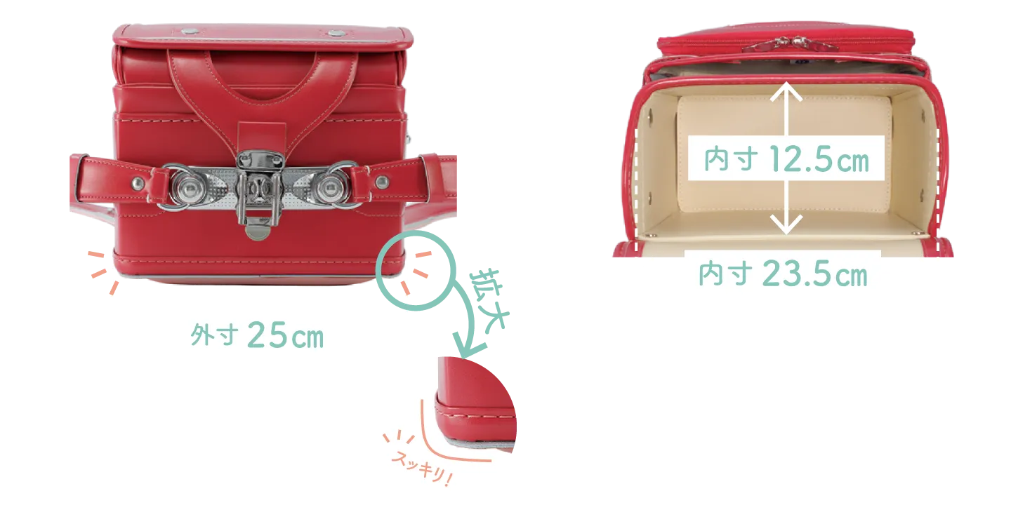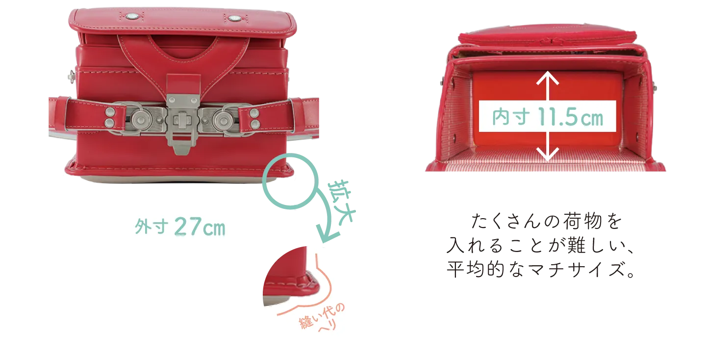 マチの広い大容量のランドセルでありながら、耐久性を兼ね備えています。